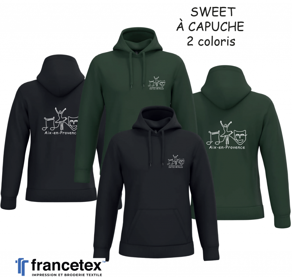 Cette ligne de vêtements fashion pour les élèves du Conservatoire se décline aujourd’hui en 2 modèles : un T-shirt Bio écoresponsable de grande qualité et un Sweat à capuche doublée avec le nouveau logo des élèves des 3 disciplines du CRR d’Aix-en-Provence : Musique – Danse – Théâtre.